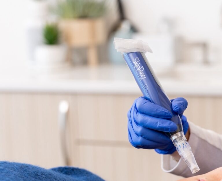 Most of our patients describe a SkinPen treatment as feeling like a light vibration and mild pressure, combined with a slight tingling or pricking sensation. To help minimize any discomfort, we may apply a numbing cream or topical anesthetic to the skin before the treatment.
